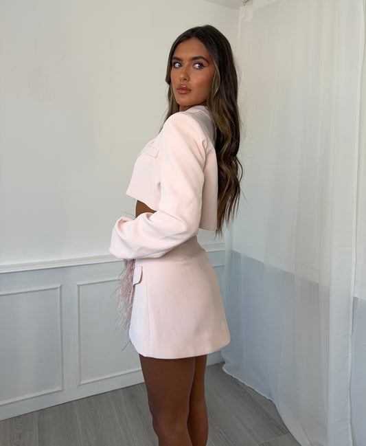 Blazer Cindy Feather Cropped en Rosa Blush