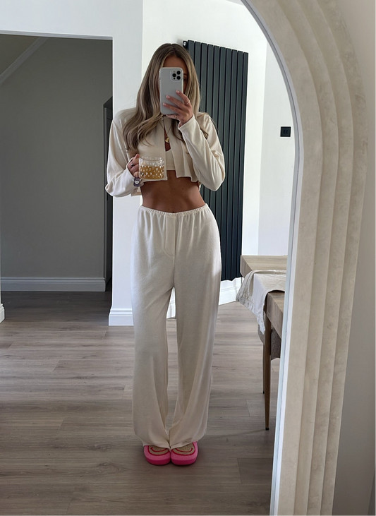 Cárdigan Towelling Cropped en Crema