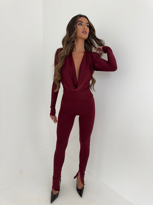 Vestido Serena Slinky de Manga Larga en Borgoña