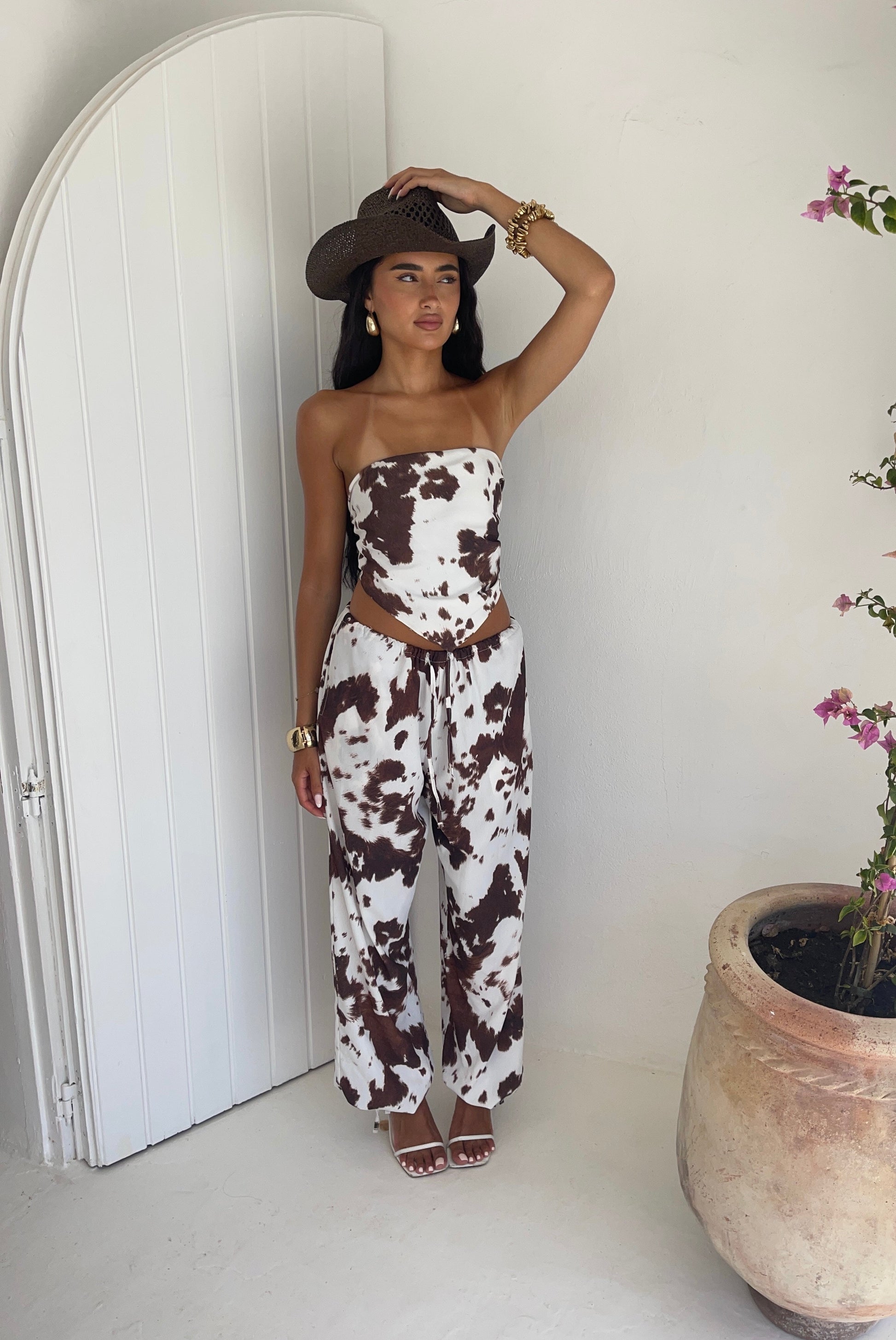 El estampado cow print en tonos marrón y blanco aporta personalidad y carácter, convirtiéndolo en el protagonista perfecto de cualquier look. Ideal para combinar con pantalones a juego, vaqueros o faldas de tiro alto, este top es perfecto para festivales, vacaciones, tardes de verano o planes donde quieres destacar con estilo.