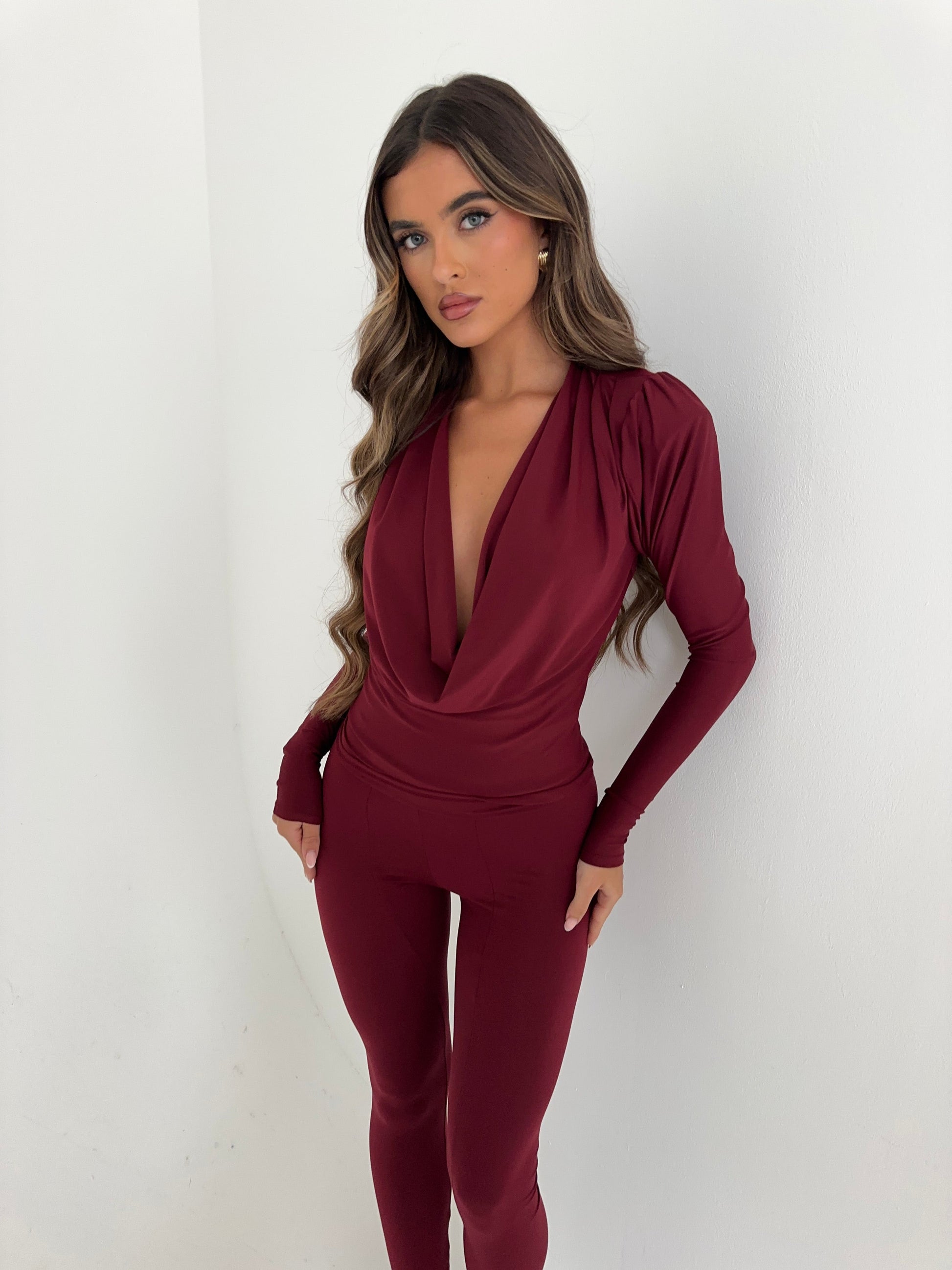 Top Jolie Drape Cowl en Borgoña